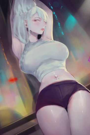#1girl #armpits #arms_up #art #black_shorts #bra #breasts #cleavage #completely_nude #crop_top #dutch_angle #large_breasts #long_hair #makeup #mask #midriff #mouth_mask #navel #navel_piercing #nekobell #nipples #nude #pants #parted_lips #piercing #pussy #red_lips #short_shorts #shorts #sleeveless #solo #stomach #sweater #thigh_gap #thighs #underwear #white_hair #white_pants #white_sports_bra #yellow_eyes #yoga_pants