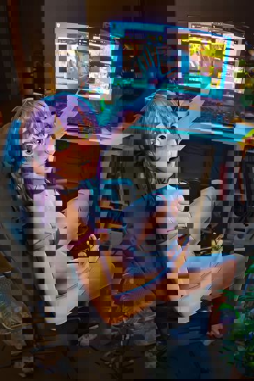 #1girl #3d #after_masturbation #barefoot #black_bra #black_choker #blush #borrowed_character #bottomless #bra #breasts #caught #chair #choker #cleavage #computer #female_masturbation #figure #gaming_chair #green_eyes #headphones #indoors #long_hair #looking_at_viewer #masturbation #medium_breasts #monitor #office_chair #open_mouth #panties #panty_pull #plant #potted_plant #purple_hair #pussy #pussy_juice #pussy_juice_trail #shoes #sitting #sneakers #solo #strap_slip #surprised #sweat #swivel_chair #tacosama3d #teeth #tissue_box #uncensored #underwear #used_tissue #walk_in #wide_eyed